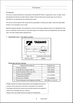 Tadano Rough Terrain Crane GR-750XL-3 - Service Manual description of the catalogue: